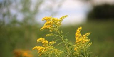 Goldenrod blooms produce heavy pollen, the wind carries it only a short distance, generally pollinated by insects. Ragweed on the other hand has lightweight pollen easily carried by wind